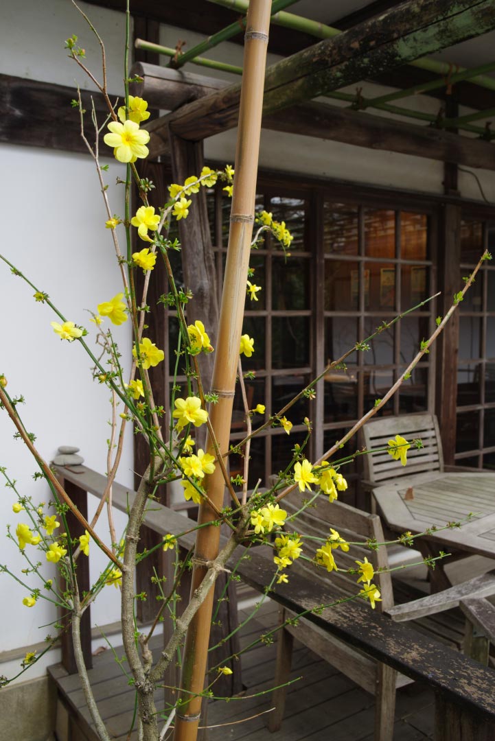 レストランテラスの綺麗な黄色の花は雲南黄梅(うんなんおうばい)。
