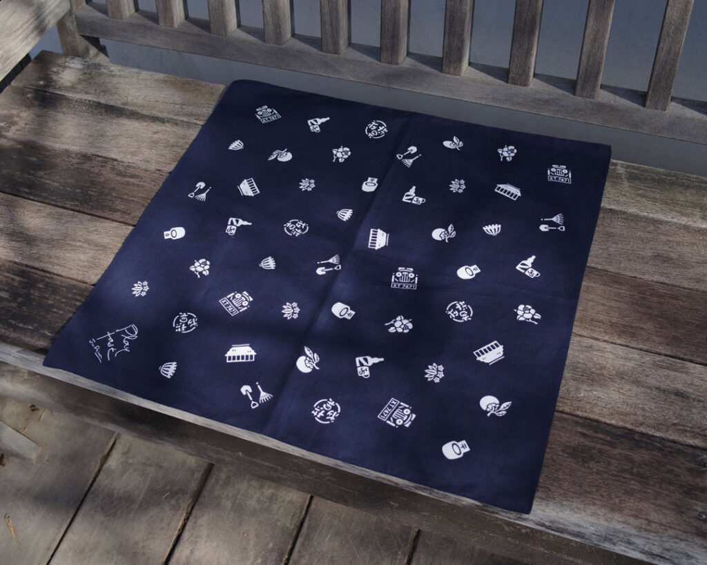 武相荘小紋のハンカチ Play Fast のワンポイント